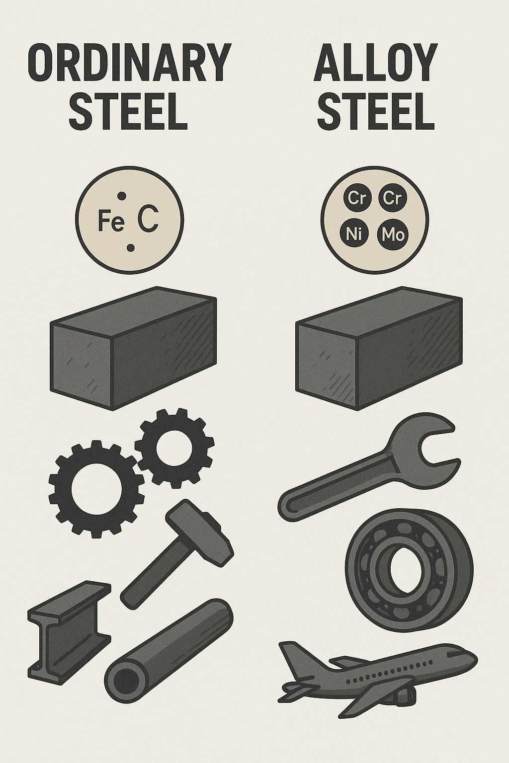 | Primaire compositie | IJzerkoolstof (met minimale sporen van onzuiverheden) | IJzer Koolstof Significante toegevoegde legeringselementen (bijv. chroom, nikkel, molybdeen) |