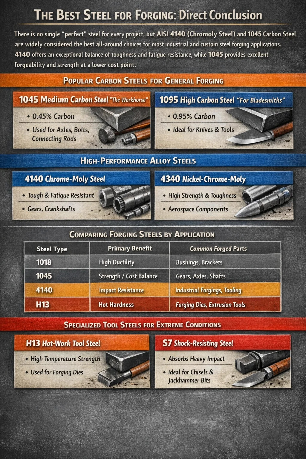 Er bestaat niet één ‘perfect’ staal voor elk project, maar AISI 4140 (chromolystaal) en 1045 koolstofstaal worden algemeen beschouwd als de beste all-round keuzes voor de meeste industriële en aangepaste producten staal smeden toepassingen. 4140 biedt een uitzonderlijke balans tussen taaiheid en vermoeidheidsweerstand, terwijl 1045 uitstekende smeedbaarheid en sterkte biedt tegen lagere kosten.